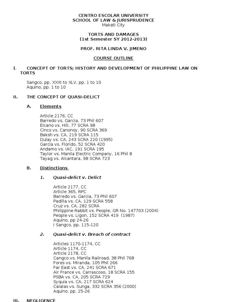 18 civil law torts and damages elements of quasi delict david taylor was a 15 year old boy who spent time as a cabin boy at sea.